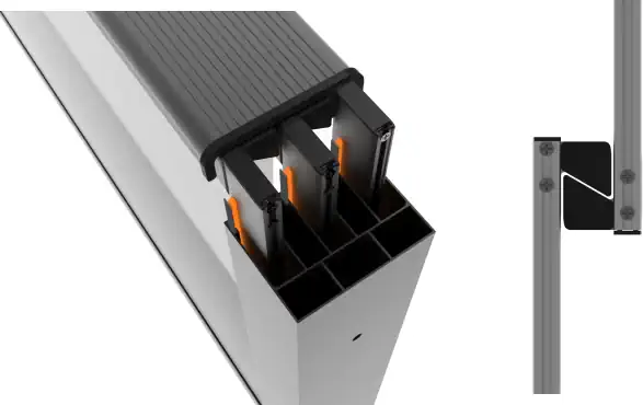 Bks Giyotin Sistemde kullanılan ara destek aksesuarı sayesinde 2 parçalı yan destekler kolay kurulum imkanı sağlar.