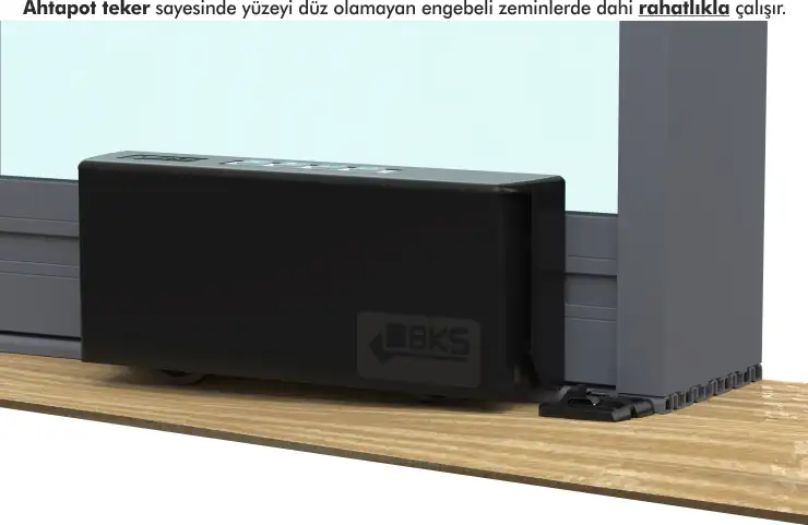 BKS Walking Motor Tüm Sürgülü Cam Balkon Sistemlerine Uyumlu, Uzaktan Kumandalı Oturduğunuz Yerden Rahatlıkla Harekete Geçirebildiğiniz Güçlü Ahtapot Tekerleri Sayesinde Yüzeyi Düz Olmayan Engebeli Zeminlerde Dahi Rahatlıkla Çalışır.
